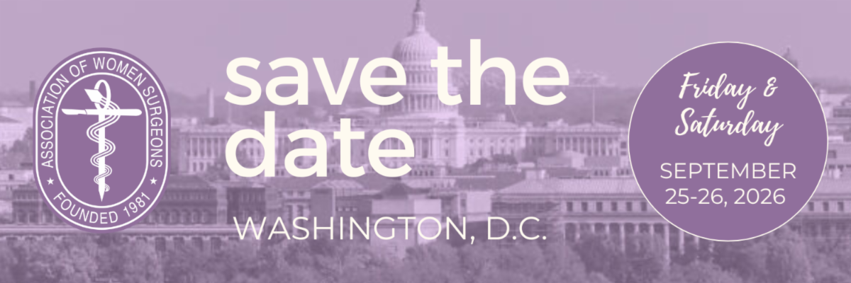 The Association of Women Surgeons is excited to announce the 2026 AWS Annual Conference, taking place September 25–26 at the Grand Hyatt Washington, DC. Guided by the theme “Advocacy: Speaking Out and Scaling New Heights for Our Patients, Our Profession, and Ourselves,” the planning committee is hard at work developing a dynamic program inspired by advocacy, leadership, and impact. More details will be shared soon—save the date!